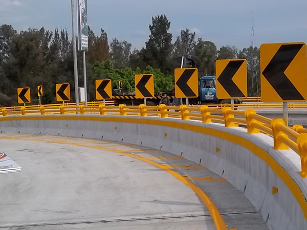 Fabricamos Defensa Metálica de dos y tres crestas bajo la norma AASHTO, la cual especifica el uso de lámina de Alta Resistencia para que al momento de recibir un impacto de un vehículo requiera mayor esfuerzo para deformarse o romperse, brindando así una mayor seguridad a los usuarios de las vialidades en caso de que lleguen a impactarla. Existen diferentes accesorios para su instalación dependiendo sus necesidades incluyendo terminales aterrizadas a pisoIndicadores de Alinieamiento